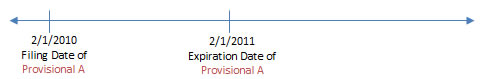 Let’s say you filed a provisional patent application on 2/1/2010 which will expire on 2/1/2011. We will call this provisional patent ‘Provisional A’.